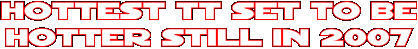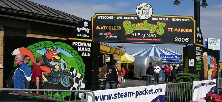 | TT fortnight burnt its way into the memory banks of locals and visitors alike in 2006. Firstly, to everyone's delight, the event was run in the best weather conditions for 40 years. Instead of fog or rain delaying races - melting tar was the culprit! Race and lap records were decicated (see link on home page for details) and at the beer tent, cooler motors were stretched to the limit, keeping the slight chill that Bushy's drinkers like. (And of course freezing out the taste for girlie lager drinkers) So next year we have the TT centenary. What can | | we expect? With Brandish corner being remodelled, lap speeds should edge nearer to the incredible 130mph. Hotel space is at a premium, but there could be an addition to the island's visitor accommodation stock. There are vague suggestions about a parade lap by Valentino Rossi - certainly not confirmed anywhere, but should he appear, the question is what will Honda do? Oh, we can't wait. We can't wait either for Bushy's 21st. We'll keep you informed on further developments. | | |